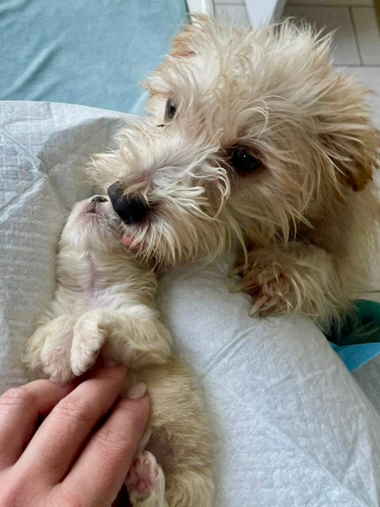 Die süße Hündin wurde zusammen mit ihren Welpen auf der Straße ausgesetzt. Unsere Tierschützerinnen fanden erst die Hundebabys in einer Tasche, wenige Zeit später Gott sei Dank auch die Mama. Aktuell lebt die kleine Hundefamilie auf einer Pflegestelle in Borsa, Rumänien, wo sie sich von ihren Strapazen erholen kann. Jetzt suchen alle ein kuscheliges warmes Für-Immer-Zuhause.🍀