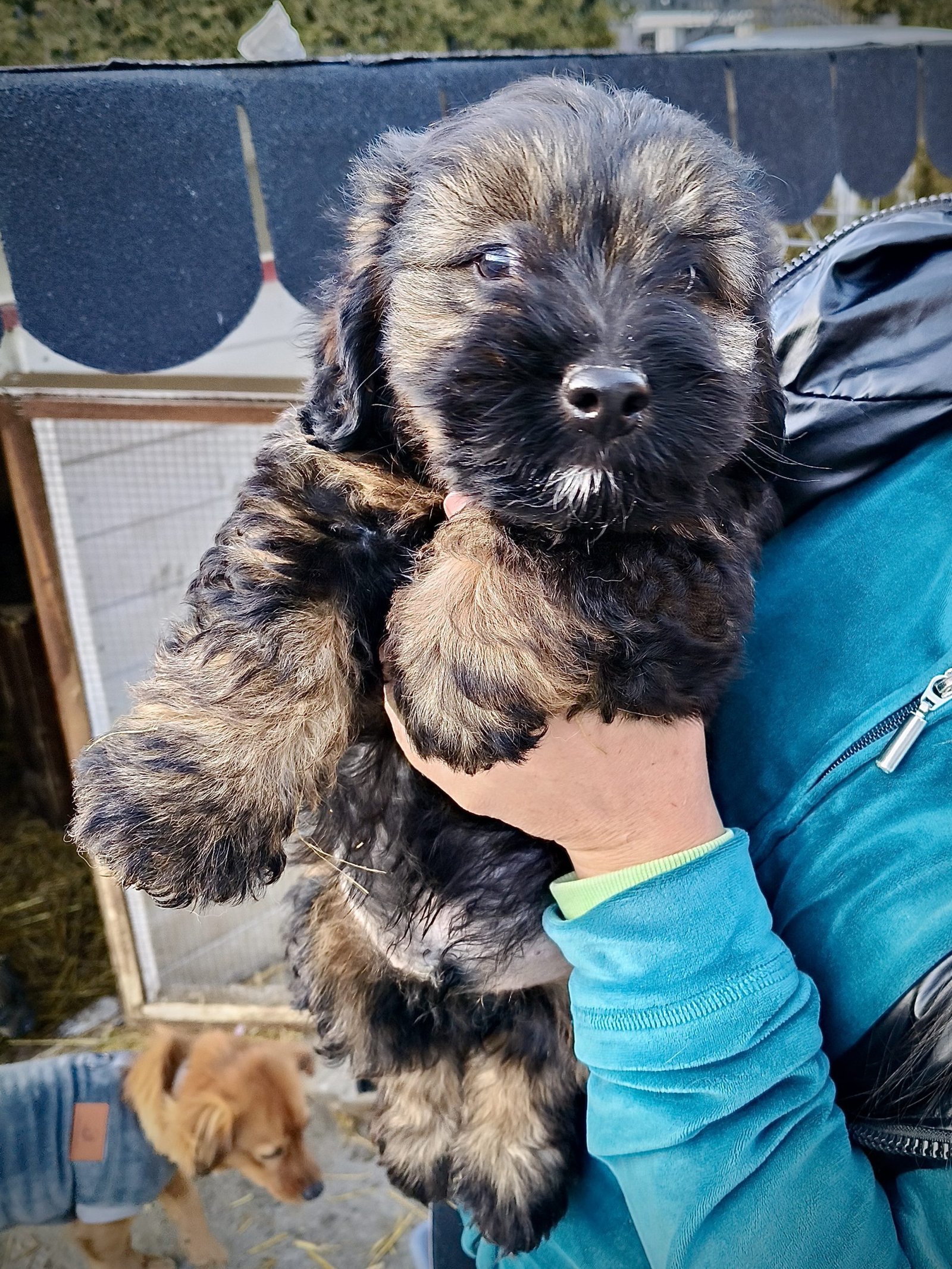 Der süße Fritz wurde gemeinsam mit seinen Geschwistern und seiner Mama auf einem Hof gefunden. Seine Mama war an einer Kette angebunden und ihre Welpen liefen ungeschützt im Hof herum und waren dort nicht in Sicherheit. Unsere Tierschützerinnen nahmen die Hundefamilie nach Absprache mit den Besitzern mit und brachten sie auf eine Pflegestelle in Borsa, Rumänien. Dort können nun alle zur Ruhe kommen.🍀