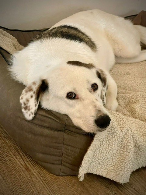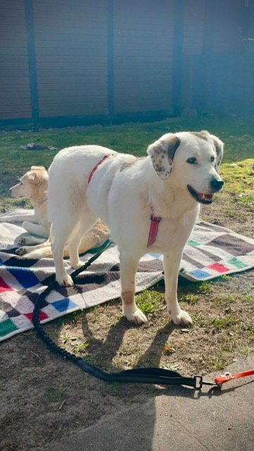 Karo, weiblich, April 2022 geboren, kastriert, ca. 55 cm groß, kommt aus Rumänien, gechipt, geimpft, gegen Zecken und Flöhe behandelt, hat ein Sicherheitsgeschirr und einen blauen EU-Pass.