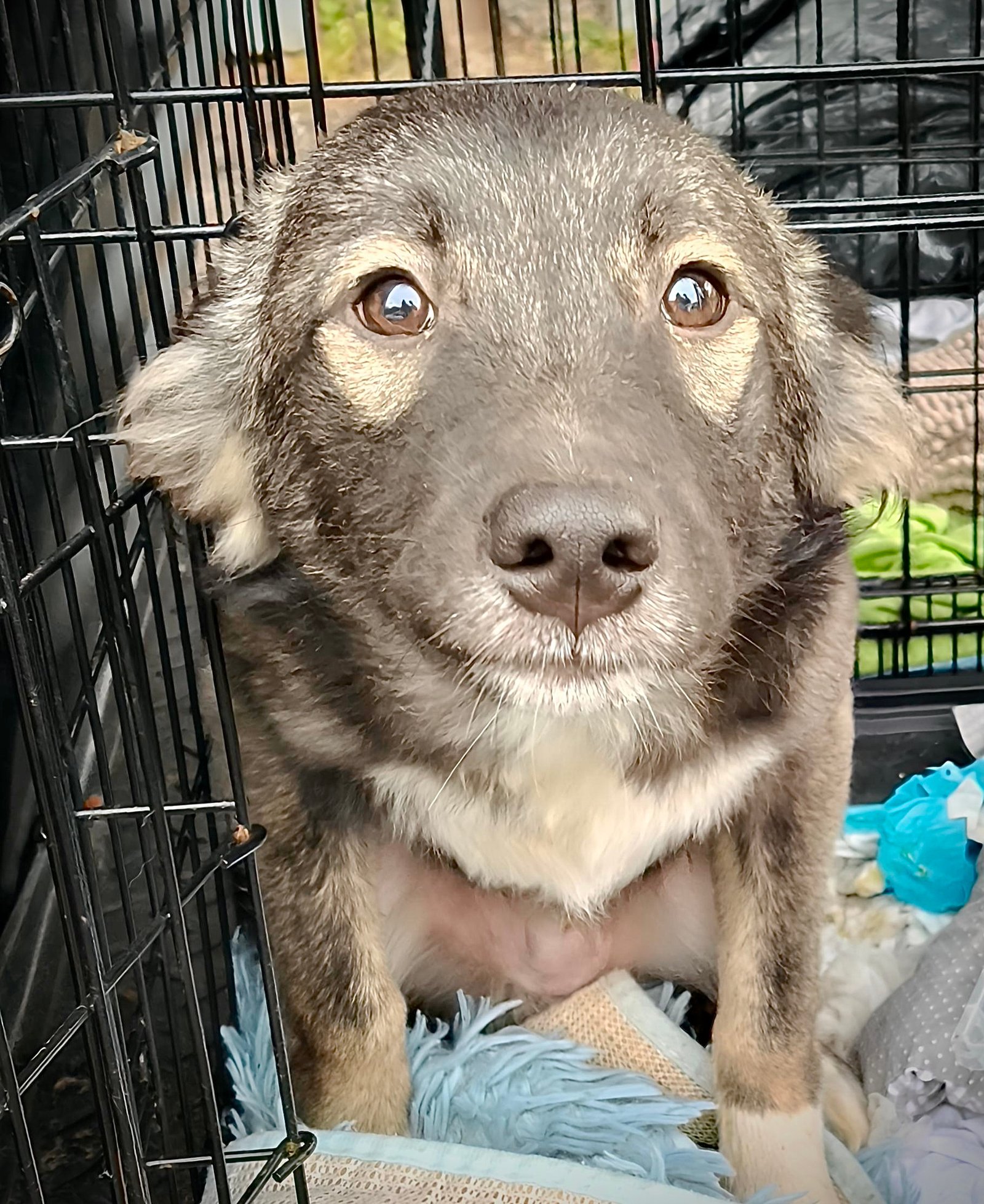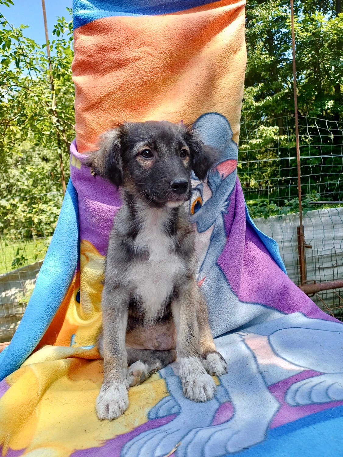Skip, männlich, März 2025 geboren, wird ca. 55 cm groß werden, kastriert, negativer Mittelmeerkrankheiten-Test, kommt aus Rumänien, gechipt, geimpft, gegen Zecken und Flöhe behandelt, hat ein Sicherheitsgeschirr und einen blauen EU-Pass.